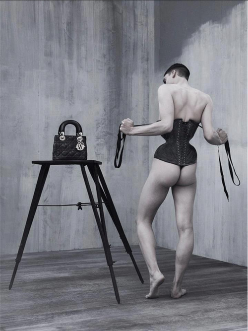 On this occasion, celebrity fashion photographer Ruven Afanador asked Gabriel Moginot to create and make a corset inspired from the cannage from the bag, and to wear it on a photo shooting.